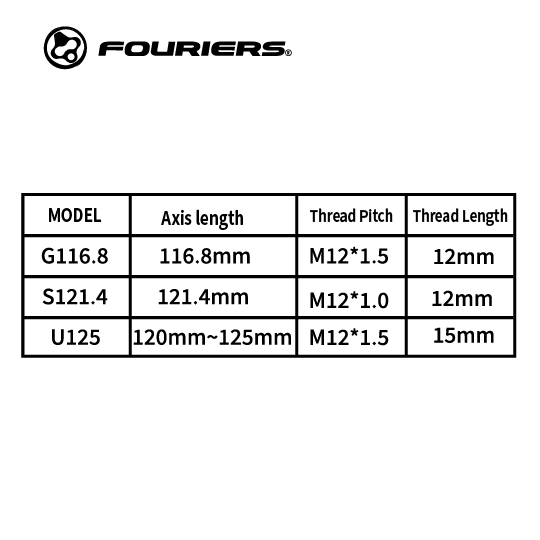 Axle Material: AL 6066-T6 Light Mount/Tube Material: AL 6061-T6 Specification: Refer to the table Weight: 60 g (116.8MM) Color: Anodized Black